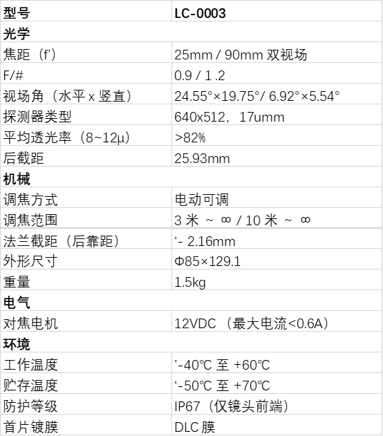 以下仅为示例,更多镜头参数请提交咨询获取。